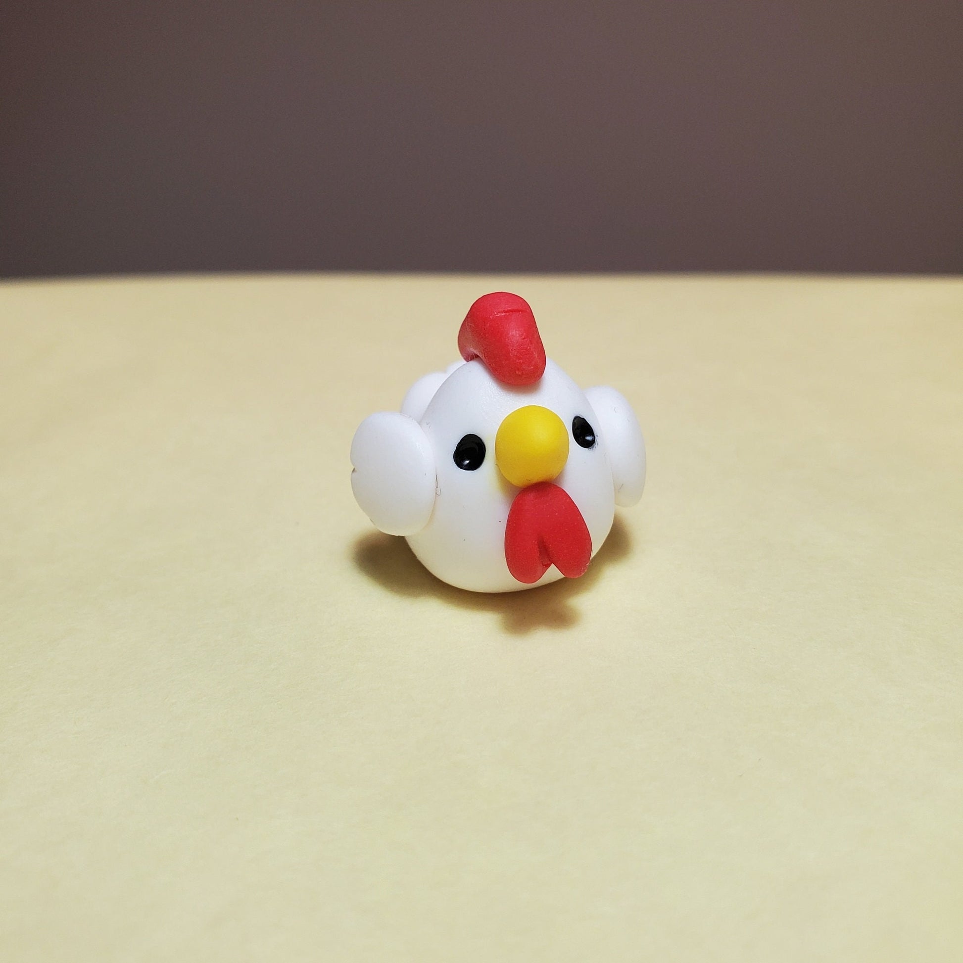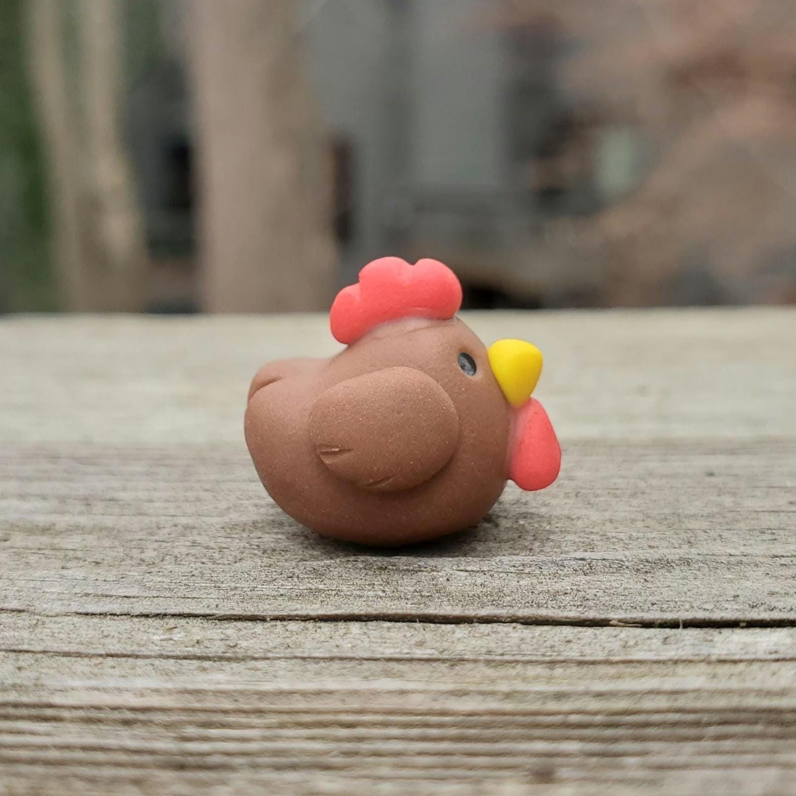 These are miniature chicken sculptures handmade from polymer clay. They are sculpted in batches of 4-10 chickens, and each batch takes approximately 3-6 hours to make from start to finish. They are made with a lot of love and attention to detail. Small parts, like the beak, are reinforced with Sculpey glue to improve durability.